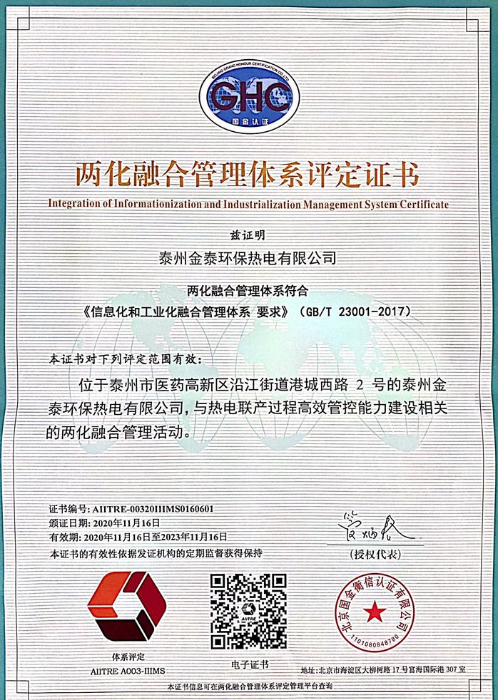 "两化融合"是工信部推行的国家战略,是信息化和工业化在技术、产品、服务、管理等各个层面的深度结合,作为提升企业核心竞争力的战略性工具,对推动企业转型升级具有深远的意义。本次两化融合管理体系认证的通过,标志着公司在推进两化深度融合方面取得显着成效并已获得国家认可。