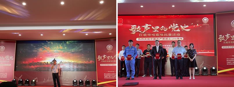 百年沧桑,百年风华,漫漫征途忆峥嵘岁月,红歌嘹亮颂百年初心。6月25日下午,在党的百年华诞即将来临之际,我公司员工陈国华、党支部积极分子黄芹参加了滨江园区举办的“歌声里的党史”红歌传唱歌咏比赛。