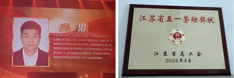 ---热烈祝贺半岛(中国)bandao·官方网页版喜获“江苏省五一劳动奖状”、董事长顾鼎喜获“泰州市劳动模范”荣誉称号